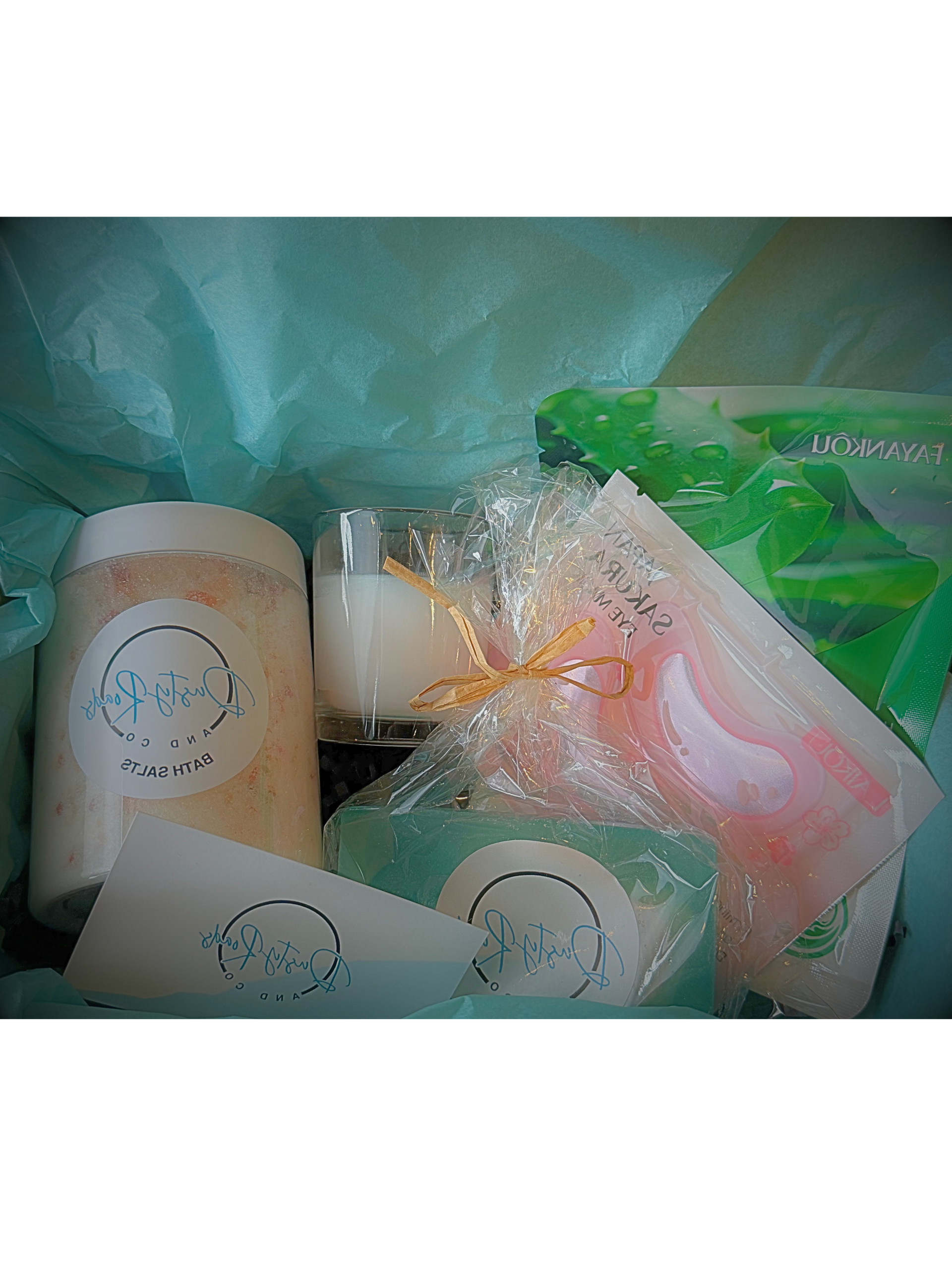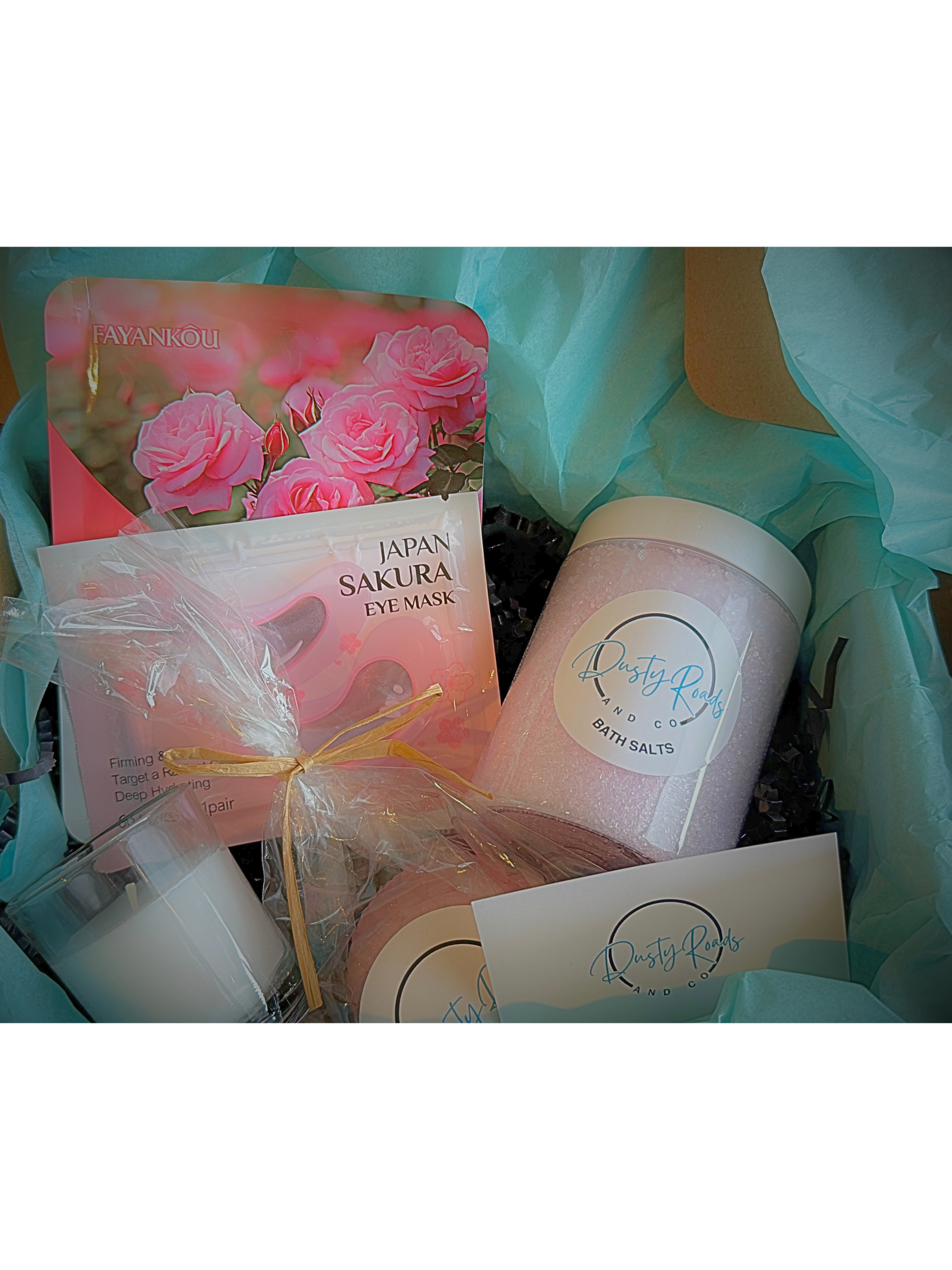 Treat your Mum this Mothers Day with this pamper box packed with handmade body products to spoil her skin. Each box is filled with a randomly selected Bath Salts or Whipped Soap, Face Mask, Eye Mask, A bar of Soap and Mini Candle.